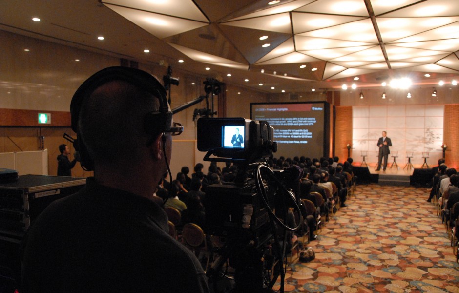 Behind the scenes, a talented technical team of producers and technicians will keep everything running smoothly and on schedule. Slides and notes go to all the right screens, videos are played – music bridges cranked up. Webcasts are monitored and in this example above, Rheacom worked in Tokyo with a very bright multi-lingual team. Special thanks to Richard Kipnis.